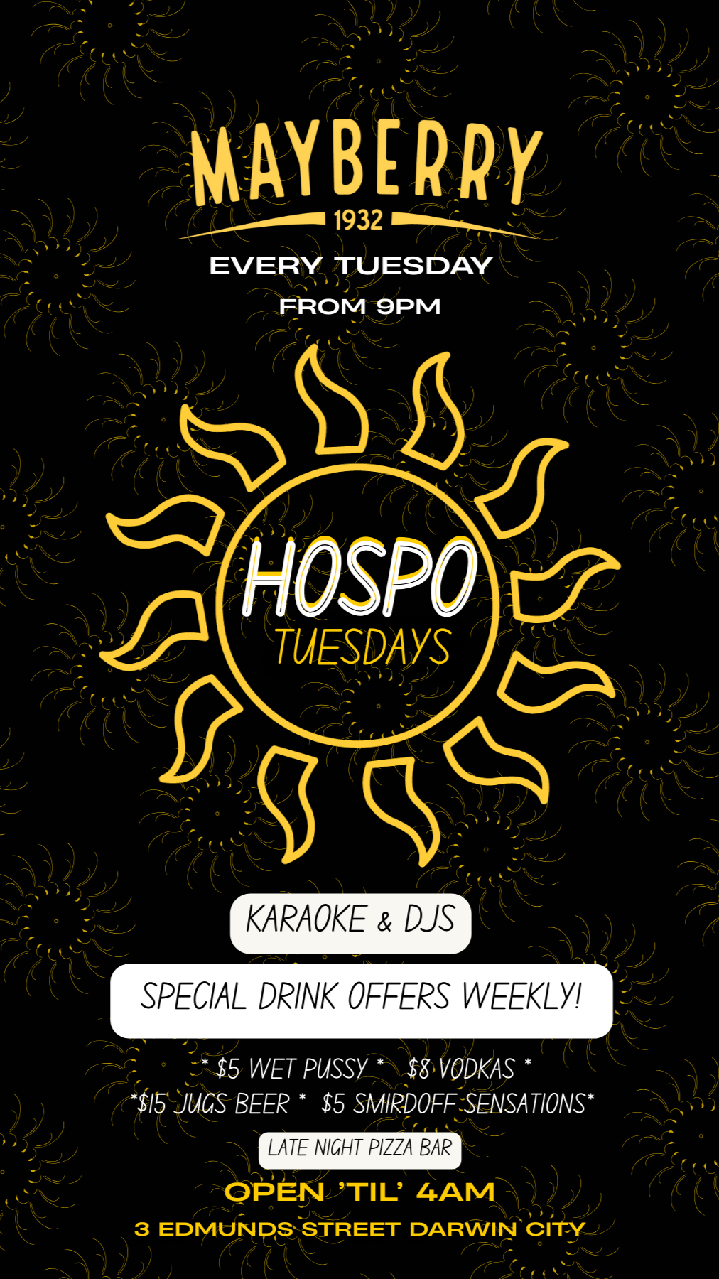 ALIBI OPEN FROM 3PM TIL 4AM - EVERYDAY